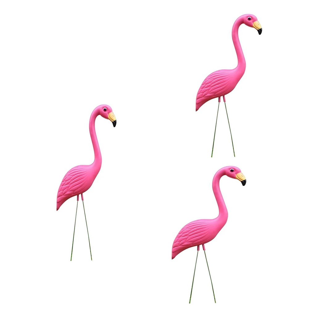 3 x Handcraft Plastic Flamingo Lawn Figurine Statue Grassland Ornament for Holiday/Wedding Party Ho
